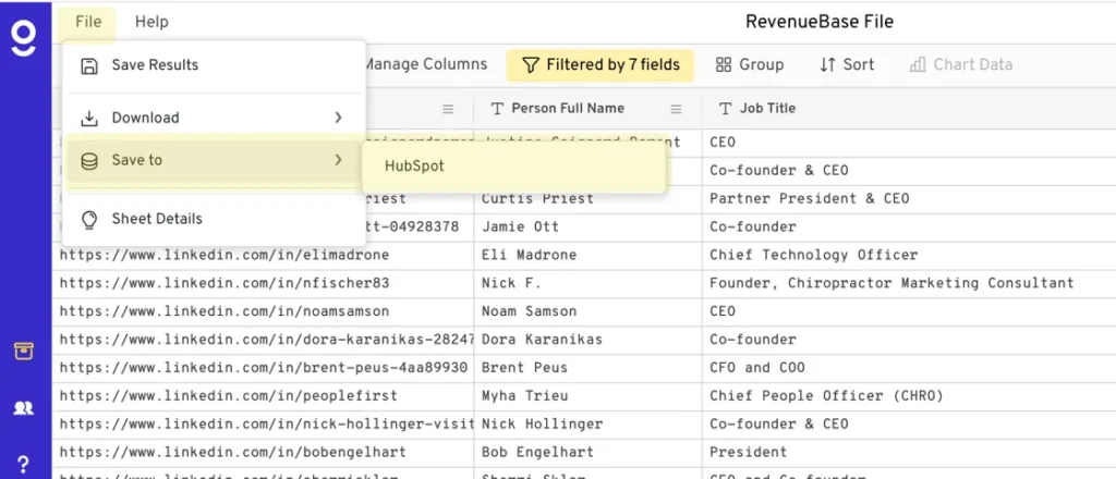- HubSpot Integration via Gigasheet: Our highly requested HubSpot integration (via Gigasheet) is available within the UI, click File > Save > Hubspot